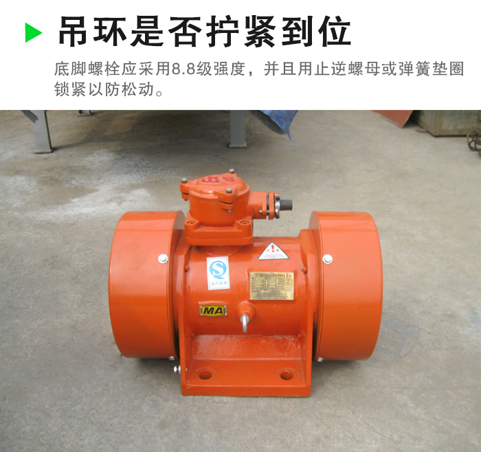 振動機械與電機底腳接觸面的粗糙度不低于6.3;
