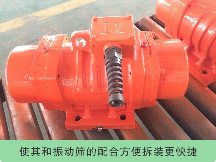 VB振動電機在各方面進行了加強和優(yōu)化使其和振動篩的配合更好,拆裝更方便,維護更簡單。
