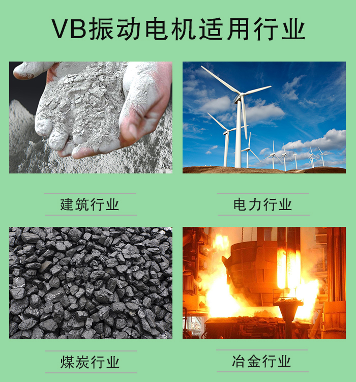 VB振動電機作為各類振動機械設備的振動源,如振動給料機、振動輸送機、振動放礦機、振動落砂機、振動篩分機、料倉振動防閉塞裝置等,廣泛適用于電力、建材、煤炭、礦山、冶金、化工、輕工、鑄造等行業(yè)。